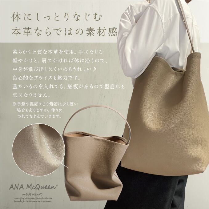 シンプルながらも洗練されたデザインの本革ラージトート♪