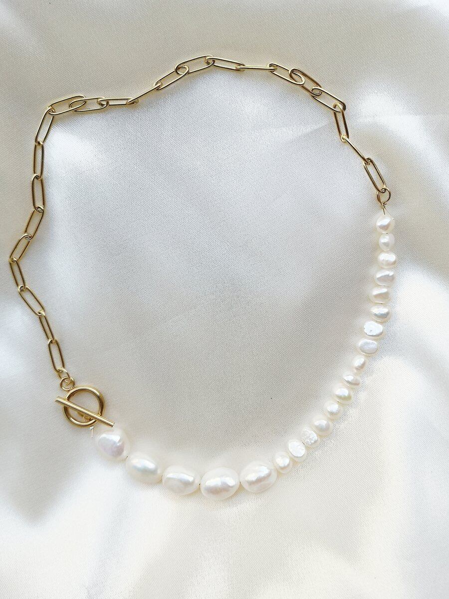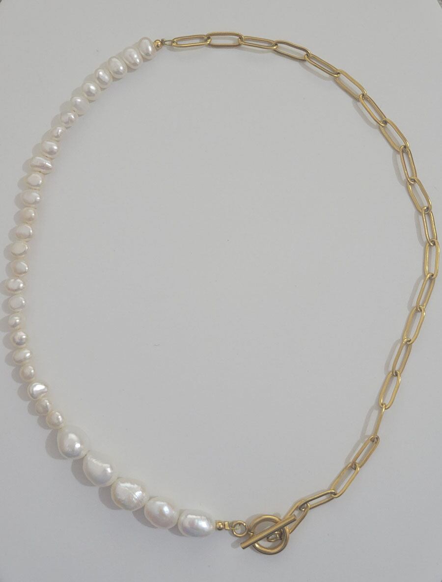 今春注目アイテム。 パール&K18チェーンのゴージャスネックレス。