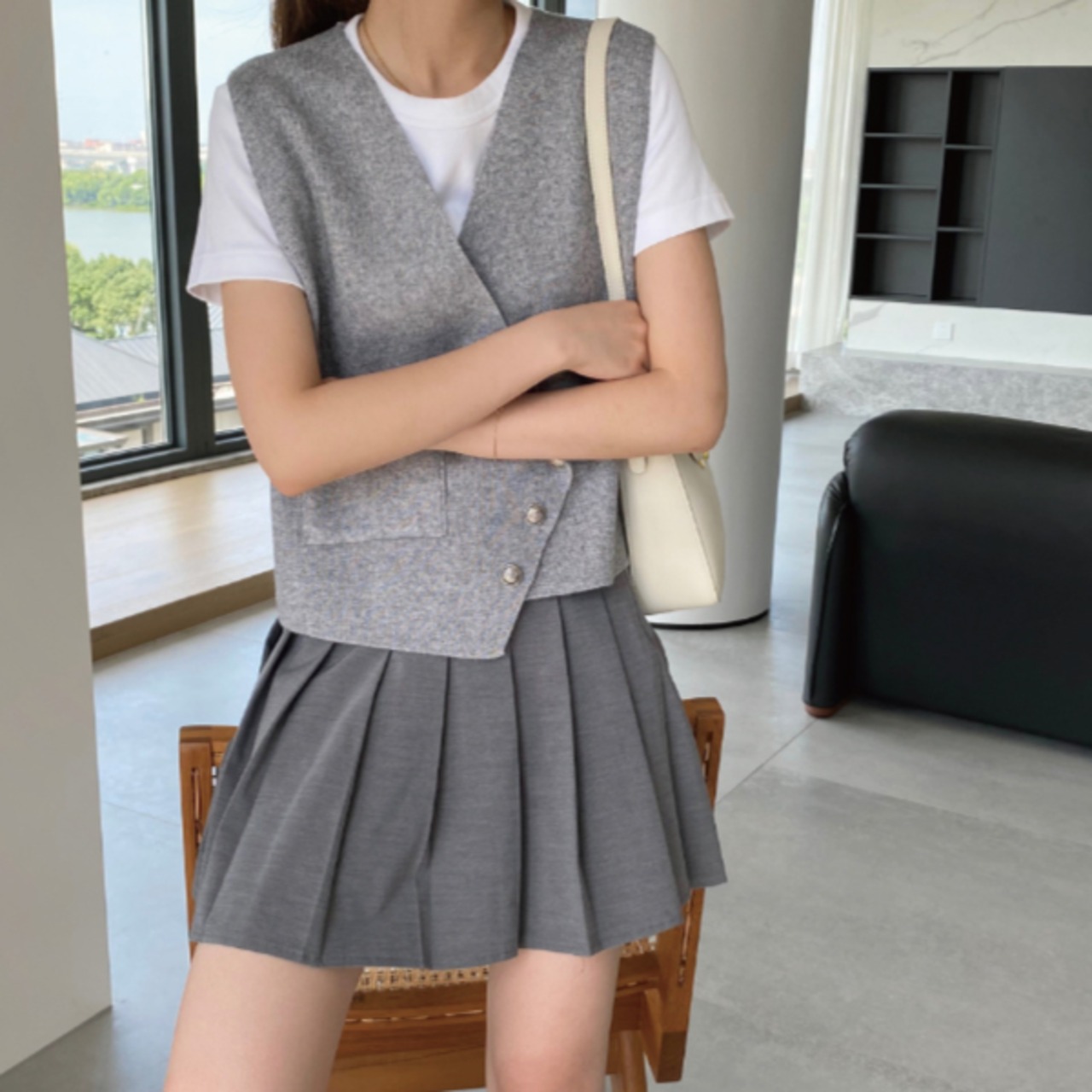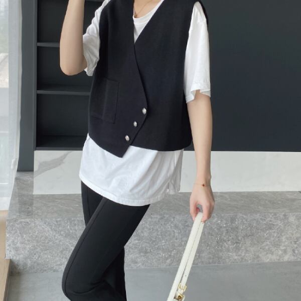 綺麗めにもカジュアルにもスタイリングできるベーシックベスト♪