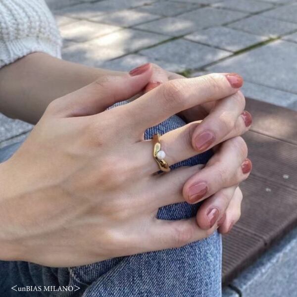 上に乗っているかのように存在するパールで指元を引き立ててくれます♪