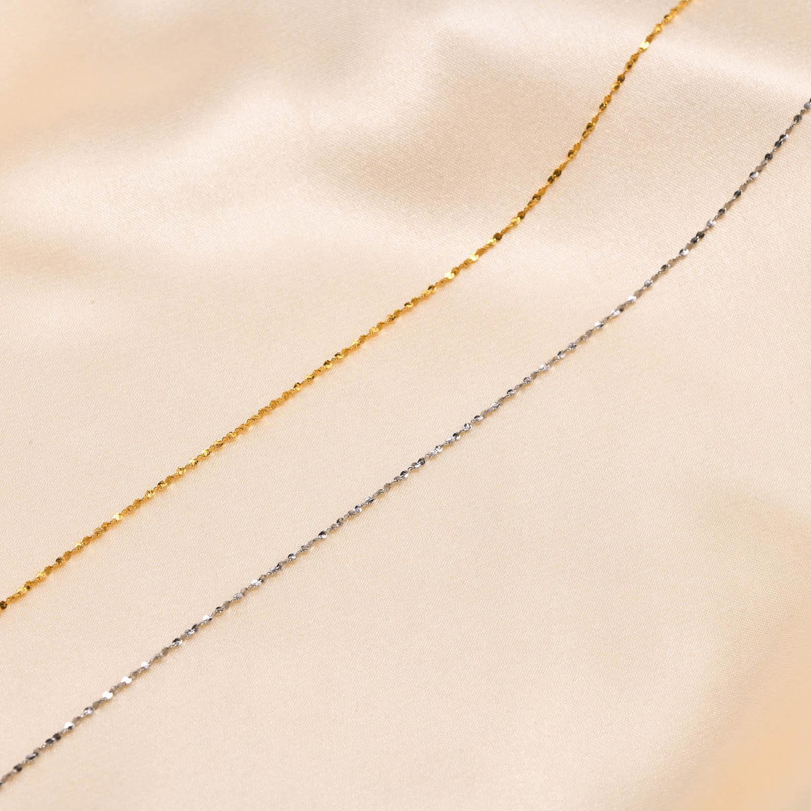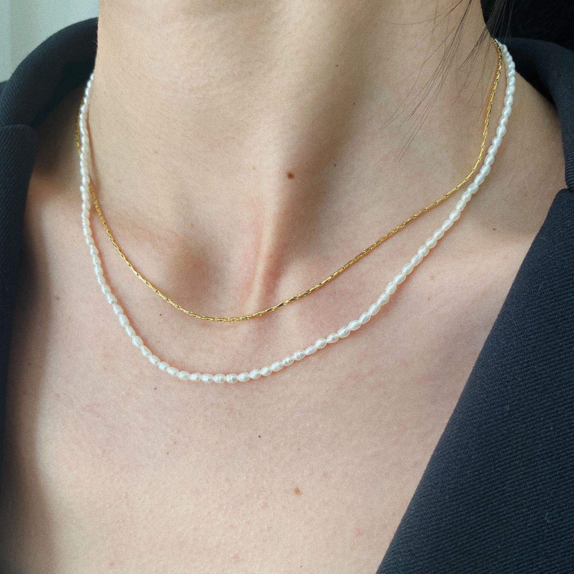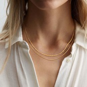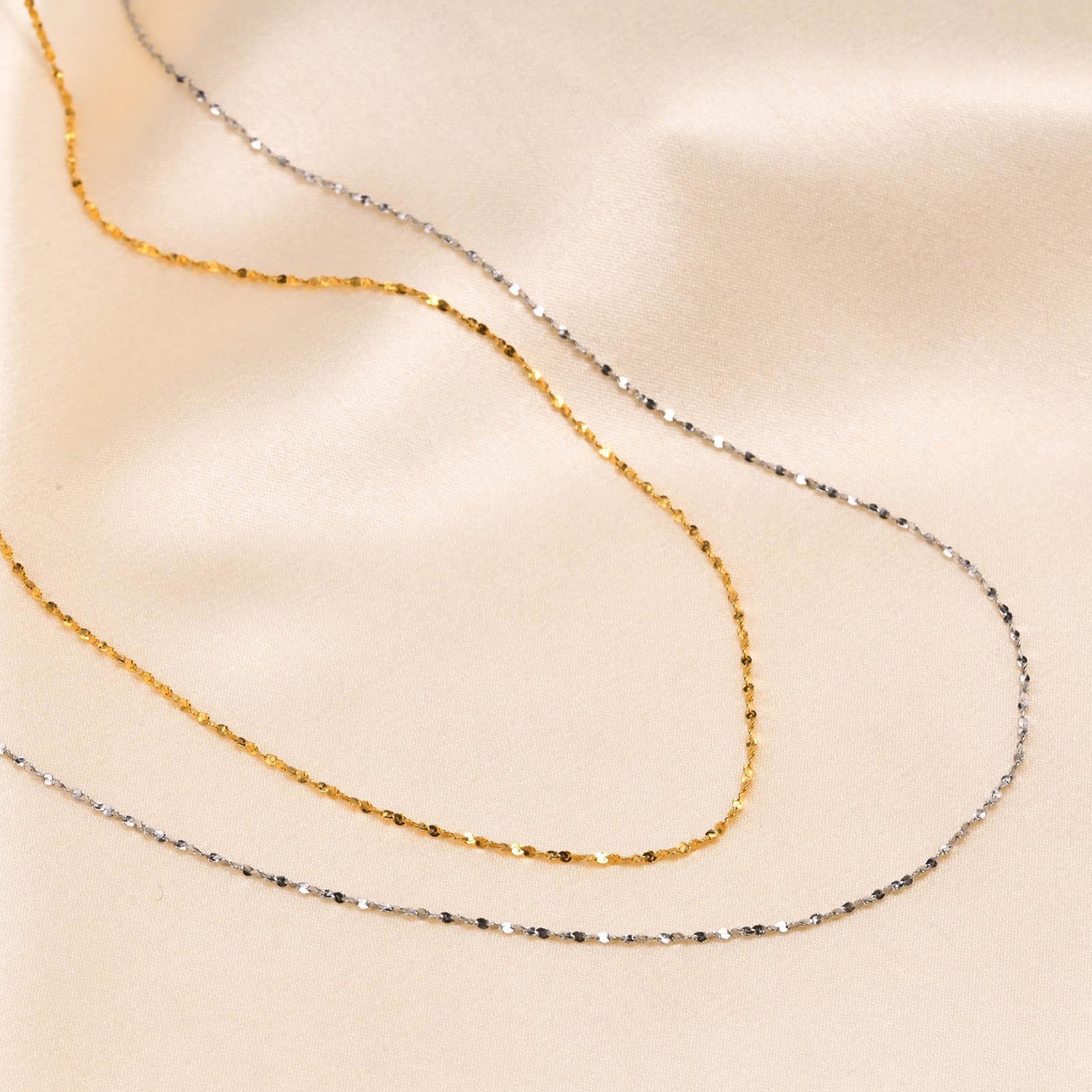 トレンドの極細スネークチェーンがコーディネートにこなれ感をプラス◎