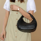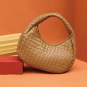 編み込みデザインがお洒落なハンドバッグ。