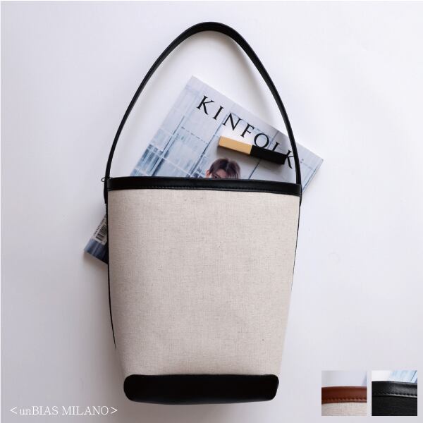 <unBIAS MILANO> キャンバス トートバッグ 麻 綿 バケットバッグ (M064)