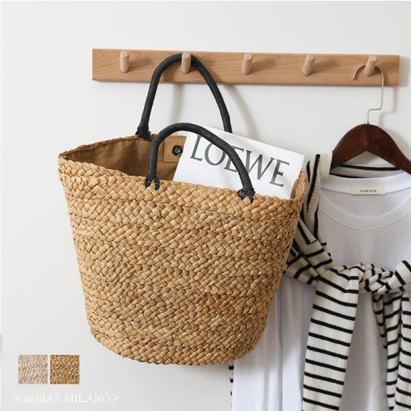 <unBIAS MILANO> 大容量 草編み バスケット トートバッグ (M067)