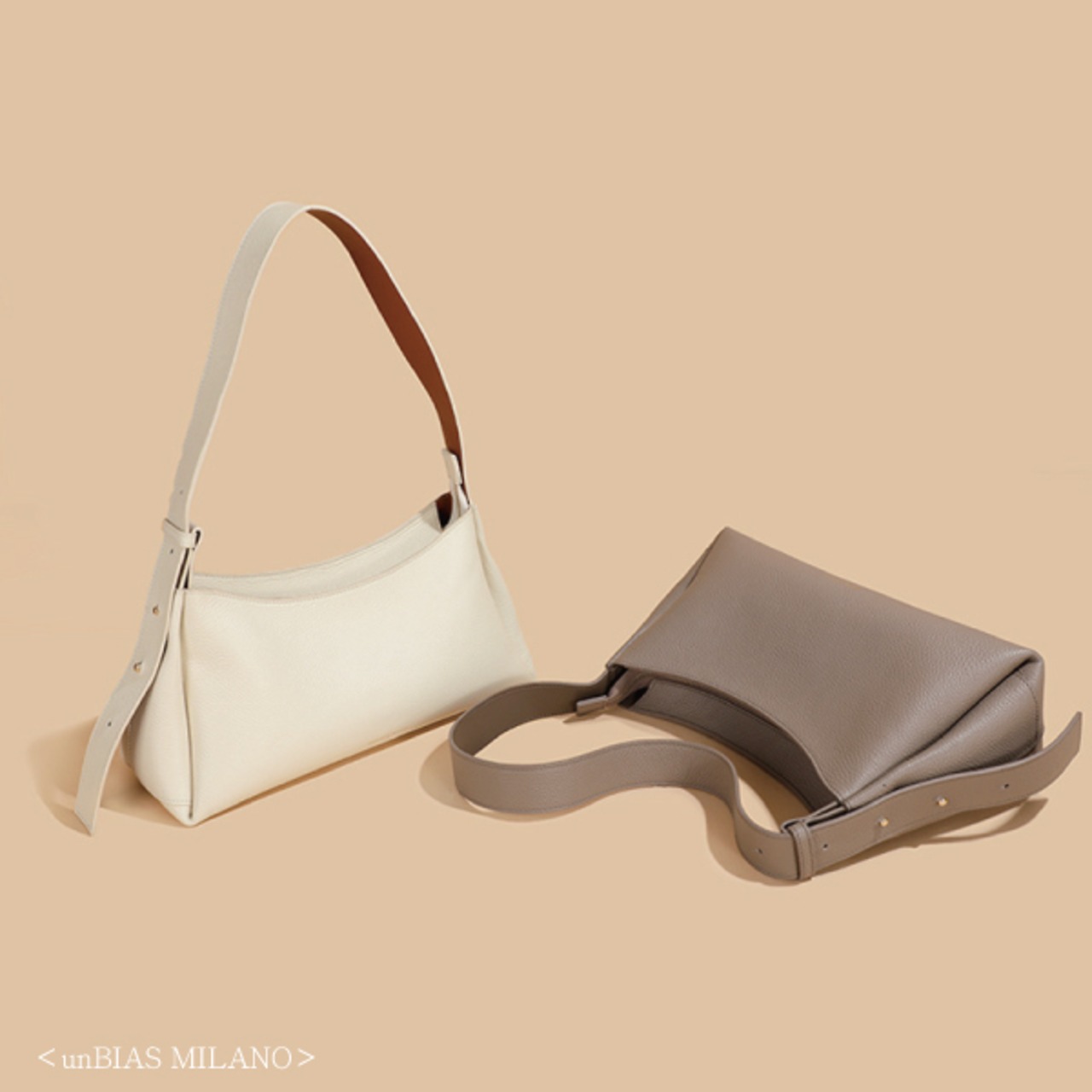 <unBIAS MILANO>本革 シンプル ワイド ショルダーバッグ (M068)
