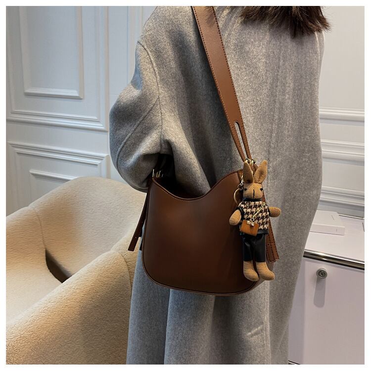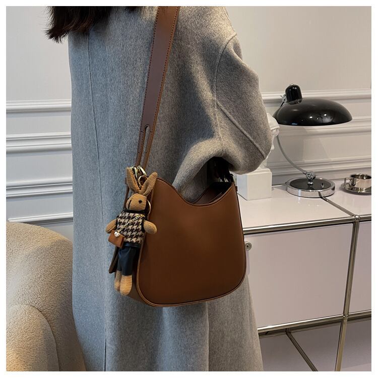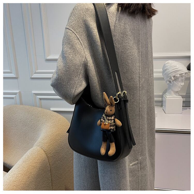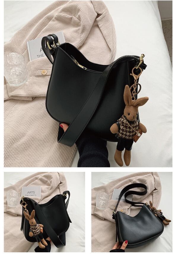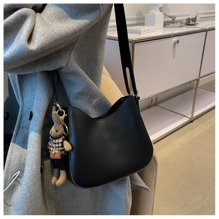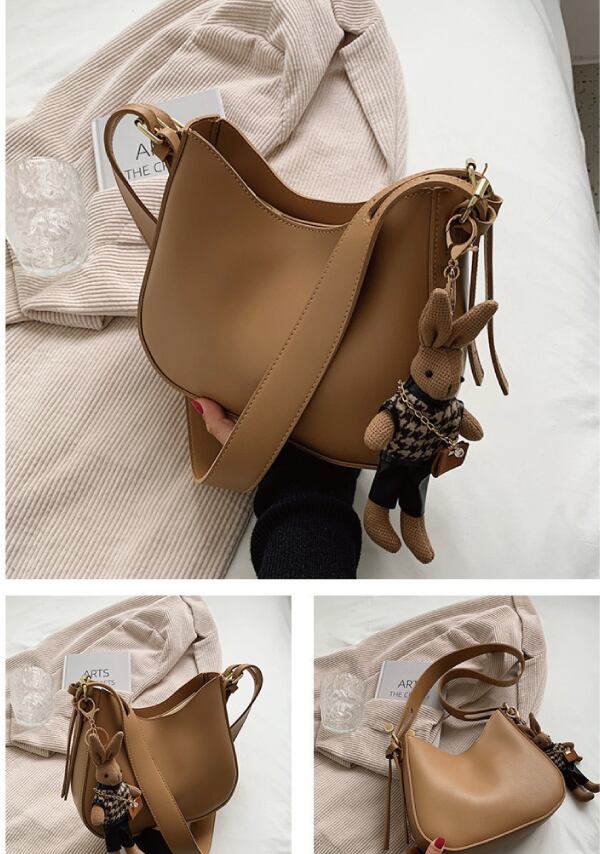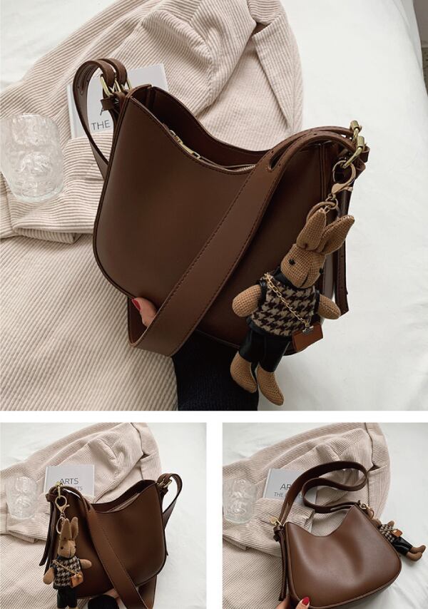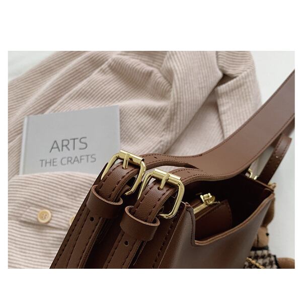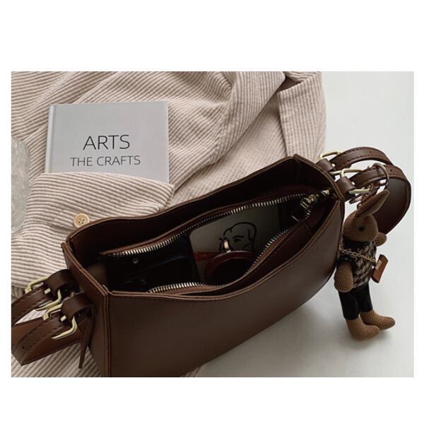 レザーの質感を活かしたシックなシンプルショルダーバッグ♪