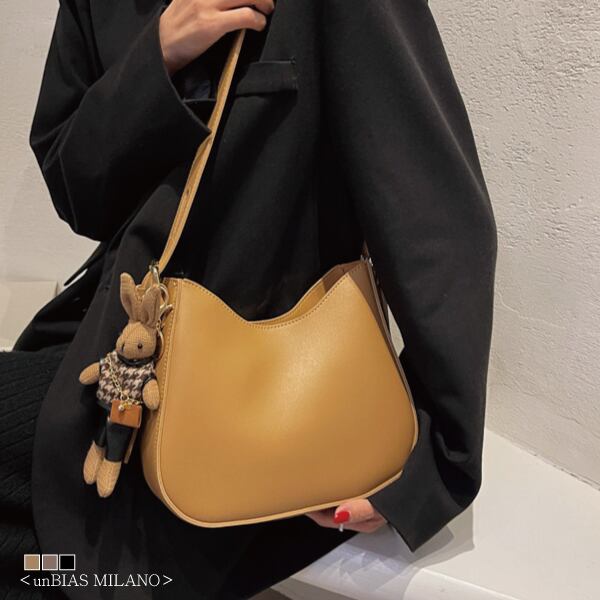 <unBIAS MILANO> シンプル ラウンドカット ショルダーバッグ (M076)