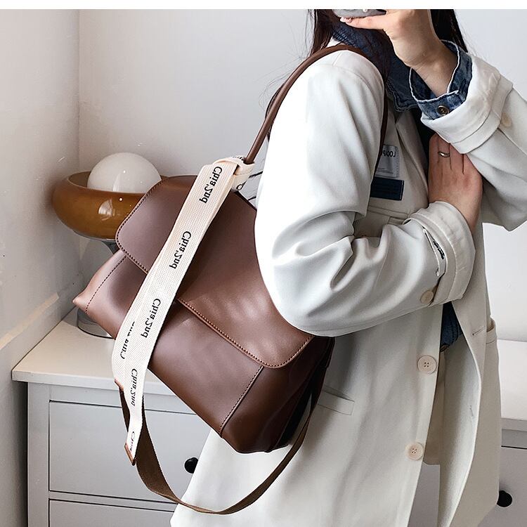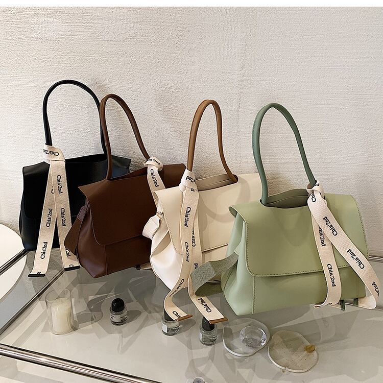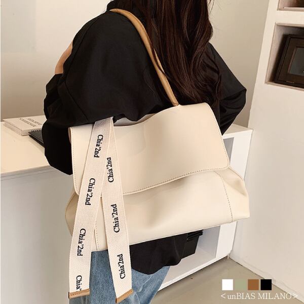 高級感溢れるPUレザーとロゴリボンのバッグ♪