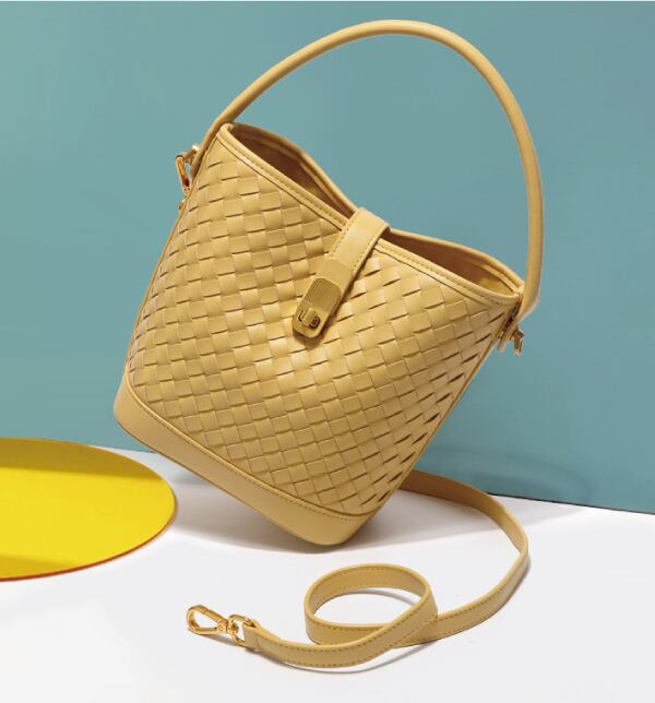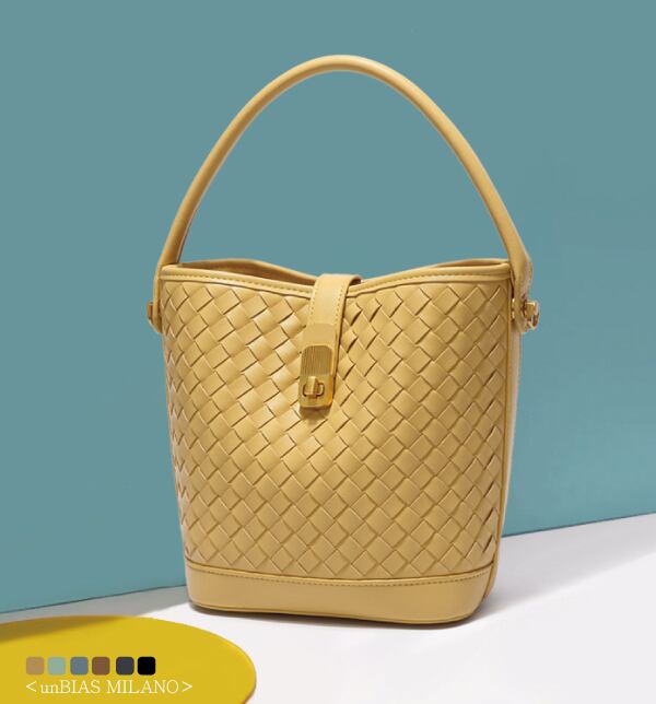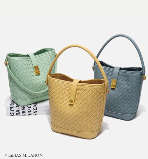 <unBIAS MILANO> ワンハンドル バケツバッグ レディース デザイン 編み込み シンプル (M097)