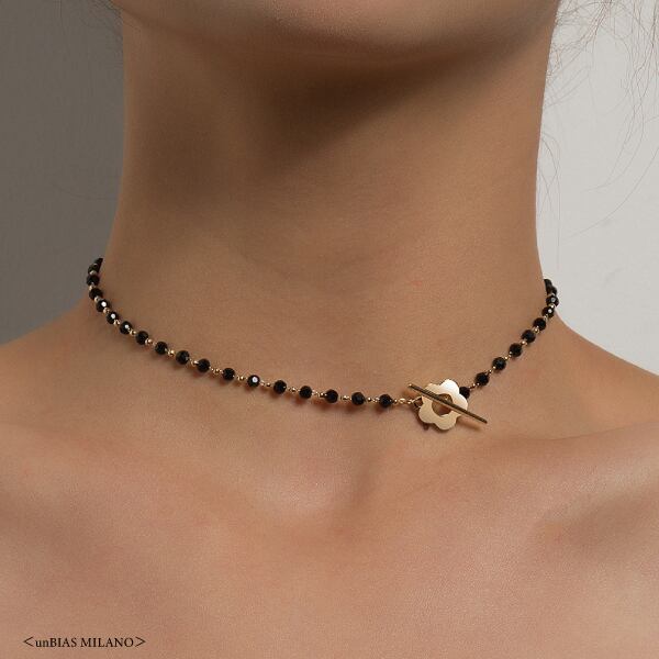 <unBIAS MILANO> フラワー マルテン トグル ビーズ ネックレス チョーカー (M117)