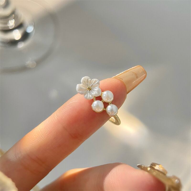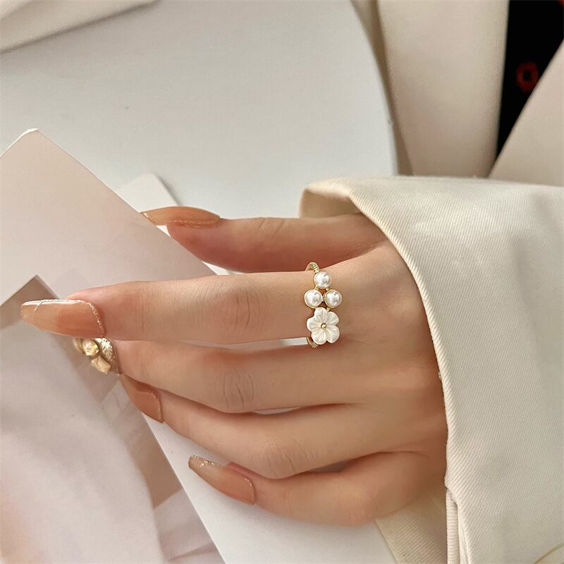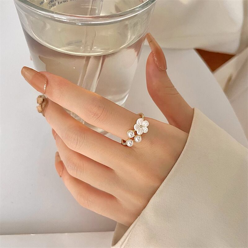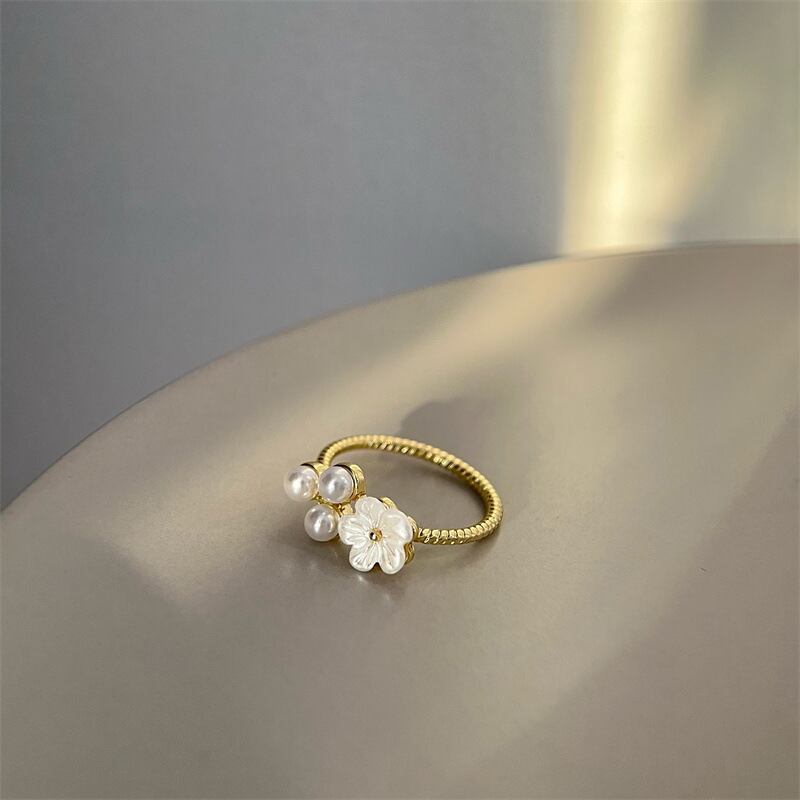 可愛くフェミニンなお花モチーフにパールをプラスしたリング♪