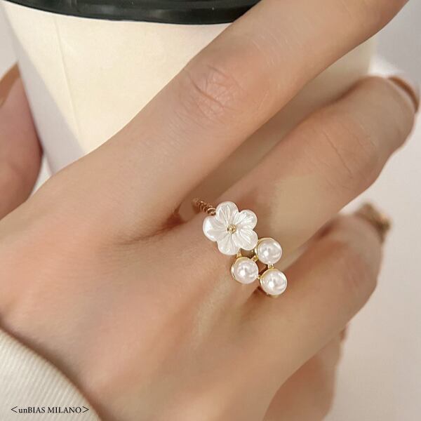 <unBIAS MILANO> フラワーモチーフ パール リング (M119)