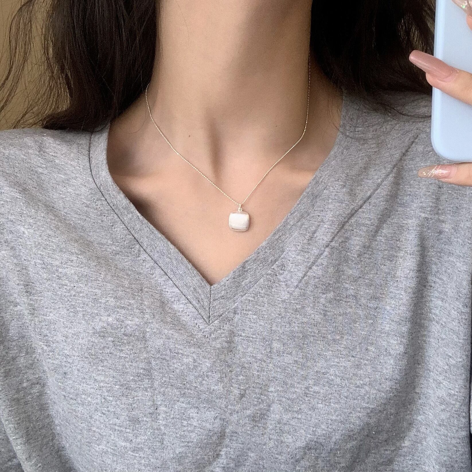 細めのチェーンにスクエア型のペンダントがアクセントとなっております◎